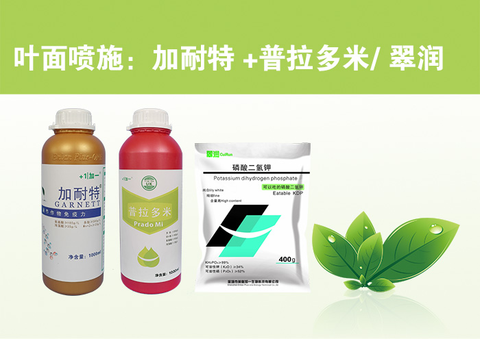 叶面喷施:加耐特 或 普拉多米 + 翠润;