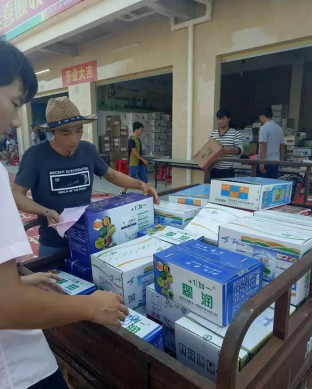 海南佳喜顺收农资大喜集,一大早,就有加一产品的忠实粉丝开车前来采购。
