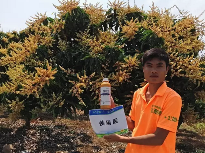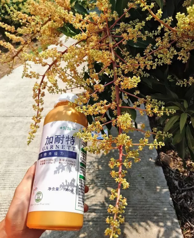 三亚市梅山镇卓老板,管理芒果一万株左右,是加一产品的大客户,今年使用加耐特+高钾46 催花,出花率高,出花整齐而且花杆红壮,扬花漂亮。卓老板采购的加耐特主要运用于催花、幼果期,目前已经使用过四趟了。由于富含300g/L多肽,可以不经过水解被作物直接吸收,快速给果实补充营养,且倒出来溶解在水里是清澈的浅绿色液体,使用后不会对果面有任何影响,有效提高果实的品质。卓老板在使用加耐特过程中看到了产品带来的效果显著,对产品非常认可。