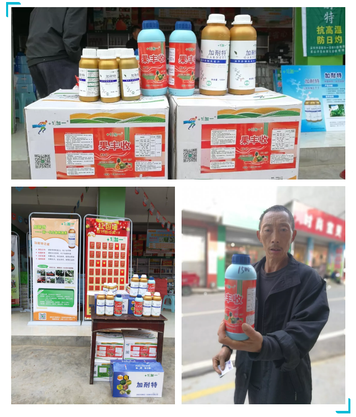 果农廖大哥也是加一的老客户了,接到殷老板的通知说加一产品做活动,就急忙赶过来。廖大哥说,使用了加一产品这么多年,果树长势一直很好,也推荐了很多周围的农户一起使用。