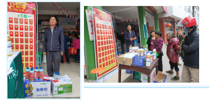 袁老板店里日常的人流量非常大,活动当天更是火爆。店面里挤满了购买产品的农户朋友们。大家都争相询问着产品的功效特点等,袁老板、宏丰的林经理、加一同事详细解答农户朋友们的问题,当天店里的活动举办的非常顺利。