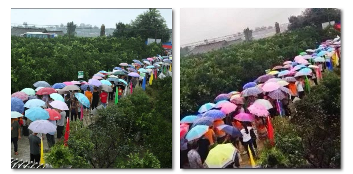 2018年8月2日,成都市蒲江县,早上暴雨骤降,乡间道路上排满长龙,出现了几百个撑着五颜六色雨伞的“观摩人”,深圳市英联加一携手蒲江县丰园农资举办的“柑橘、猕猴桃优品种植技术交流及感恩回馈行动”在众多果农朋友的期待中如期开展。