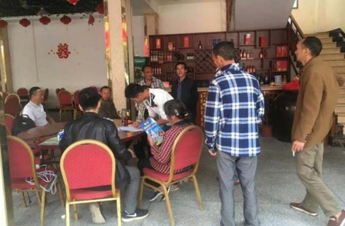 会议高潮环节来临,种植户现场积极咨询订货,零售店老板娘细心的核对订货信息,登记订货单。