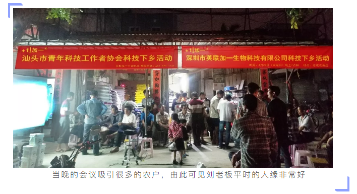 迄今为止,深圳市英联加一生物科技有限公司联合汕头市青年科技工作者协会已经举办了两场科技下乡活动,活动过程影响力大,村民受益广。这更坚定了我们开展这一系列活动的信心!