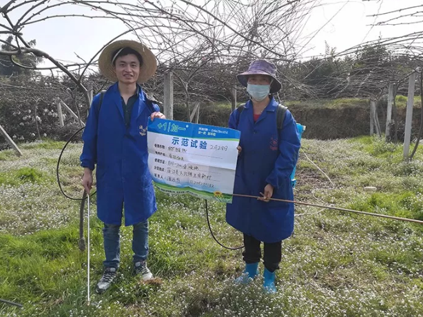 加一团队同事与种植户一起兑水,背上喷壶,前往基地,给猕猴桃喷药,期待普拉多米的神奇效果。