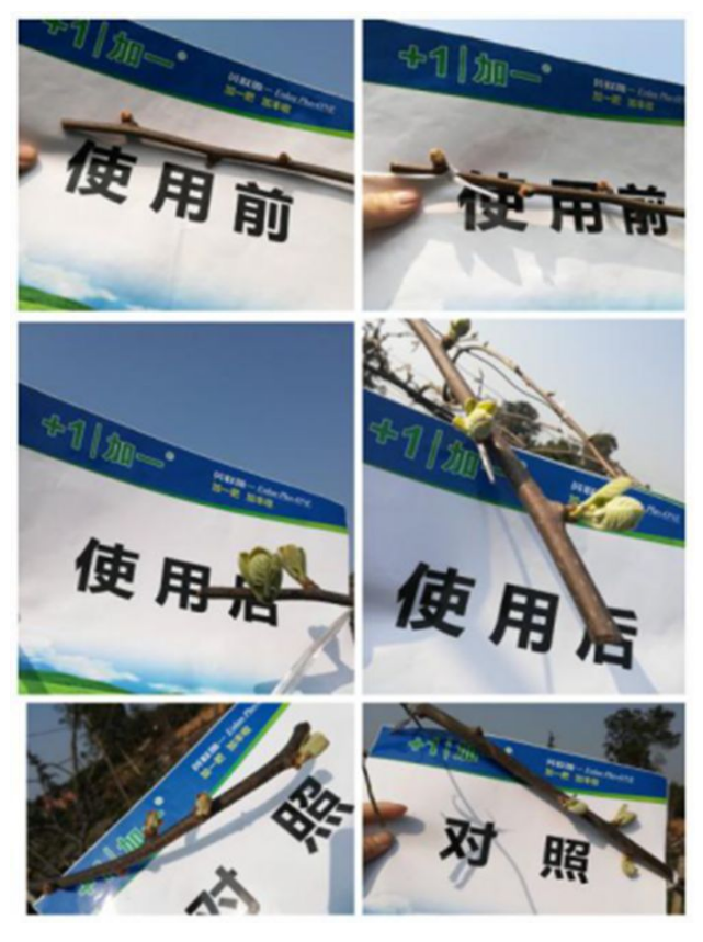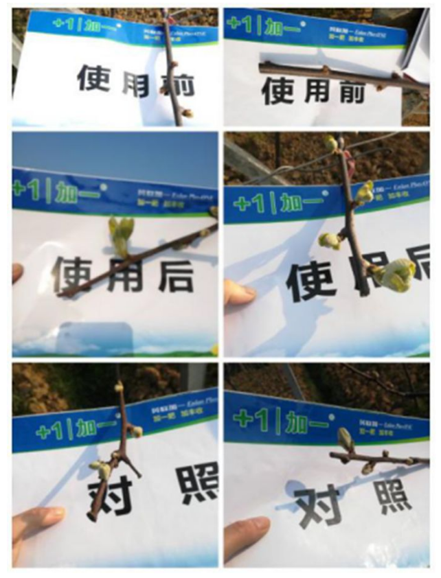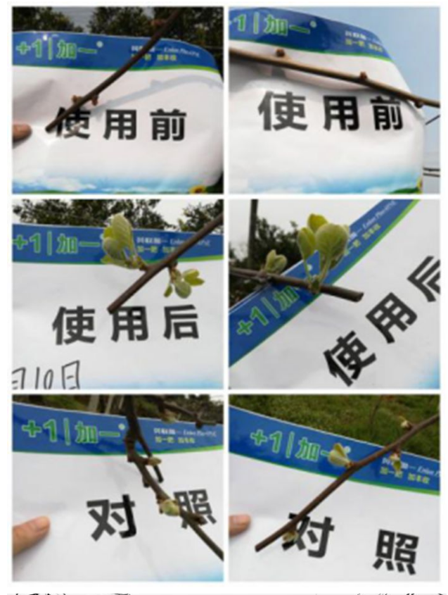 使用普拉多米之后,猕猴桃的芽苞发得很整齐,芽也比没有使用过的长得更快更整齐。