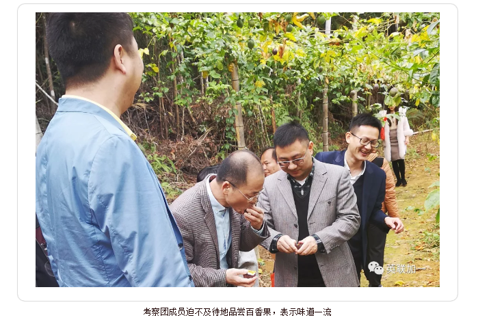 2019年1月9日,深圳市英联加一生物科技有限公司联合汕头市青年联合会,举办“新时代,新气象,新作为”汕头市青联委员走基层活动。粤东区域各乡镇负责人,一同前往梅州丰顺“锦铭泰百香果实验基地”观摩学习。此行主要结合乡村振兴、特色农业产业发展、农业科学管理技术等领域,学习新思路新做法,取经问道,对标先进,以学促干。