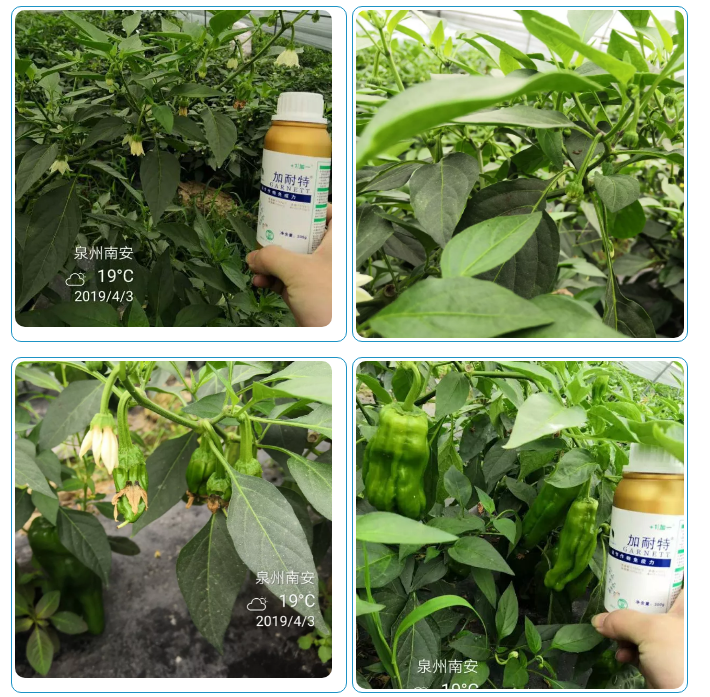 使用效果:辣椒花多,保果效果理想,并且在采摘的时候果实大小均匀,果皮靓丽有光泽,卖相好,畸形辣椒少。