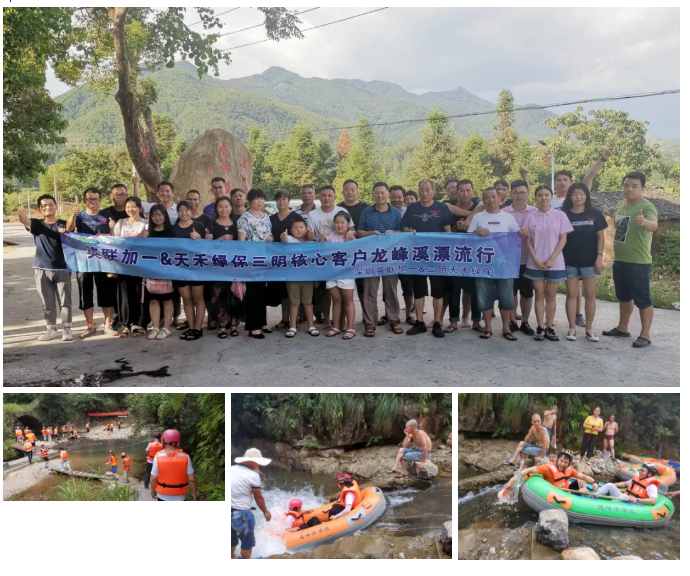 午餐过后,加一团队邀请零售商客户朋友们到龙峰溪漂流,这一路上风光秀丽,景色宜人,让人十分放松惬意。90分钟的漂流戏水,溪水沿着石壁,时而快,时而缓,激起一朵朵浪花,俏皮地向下游流去,我们的船只跟随着溪水一路畅游,度过了一个愉快凉爽的下午。