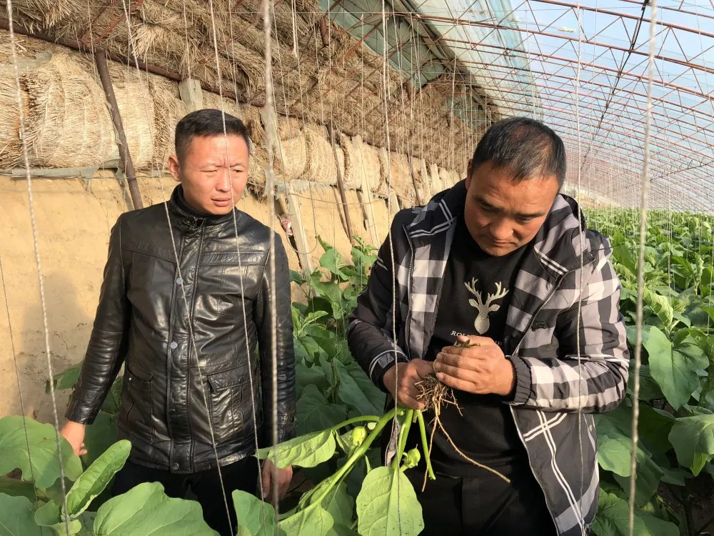 辽宁省鞍山市台安县的吕先生一直有一个苦恼:他所种植的茄子植株瘦弱,花梗细,花瘦小,花柱短,茄子花出现大量枯萎和凋落的现象。得知吕先生的困扰,英联加一团队来到了吕先生的茄子大棚,了解具体的情况。
