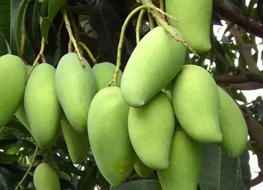 芒果,是少数富蛋白质的水果,多吃易饱。传统上说它能益眼、润泽皮肤,估计是含有胡萝卜素的原因。其核亦可作药用,能解毒消滞、降压。