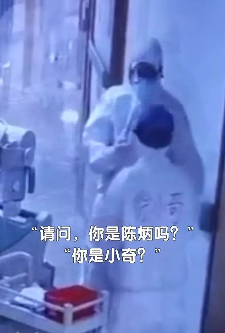 两人隔着防护服通过眼神认出彼此
