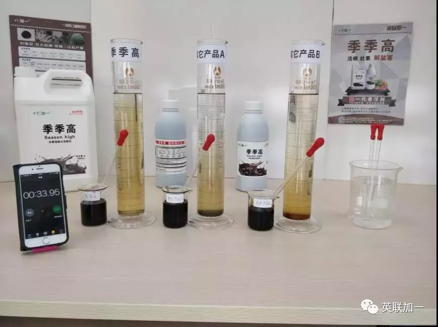 为了验证英联加一悬浮剂产品——“季季高”在水中的扩散性如何。我们将季季高与市面上的其他厂家生根促苗的产品进行对照实验。首先我们先来看一下季季高对比实验的视频。