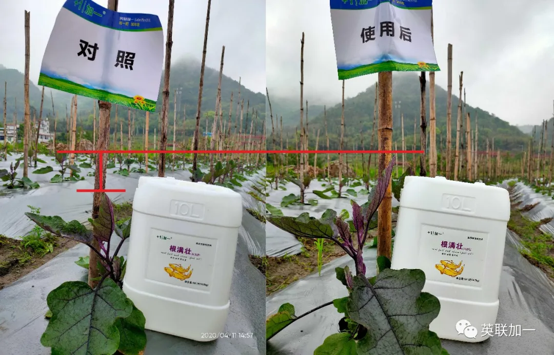 我们用一段视频来让大家更清晰的了解茄子使用根满壮鱼油型前后的植株对比。