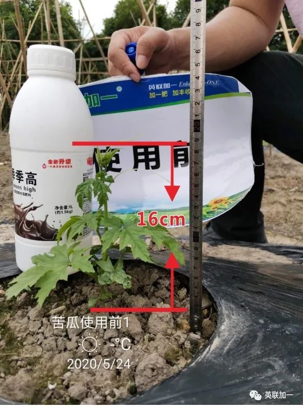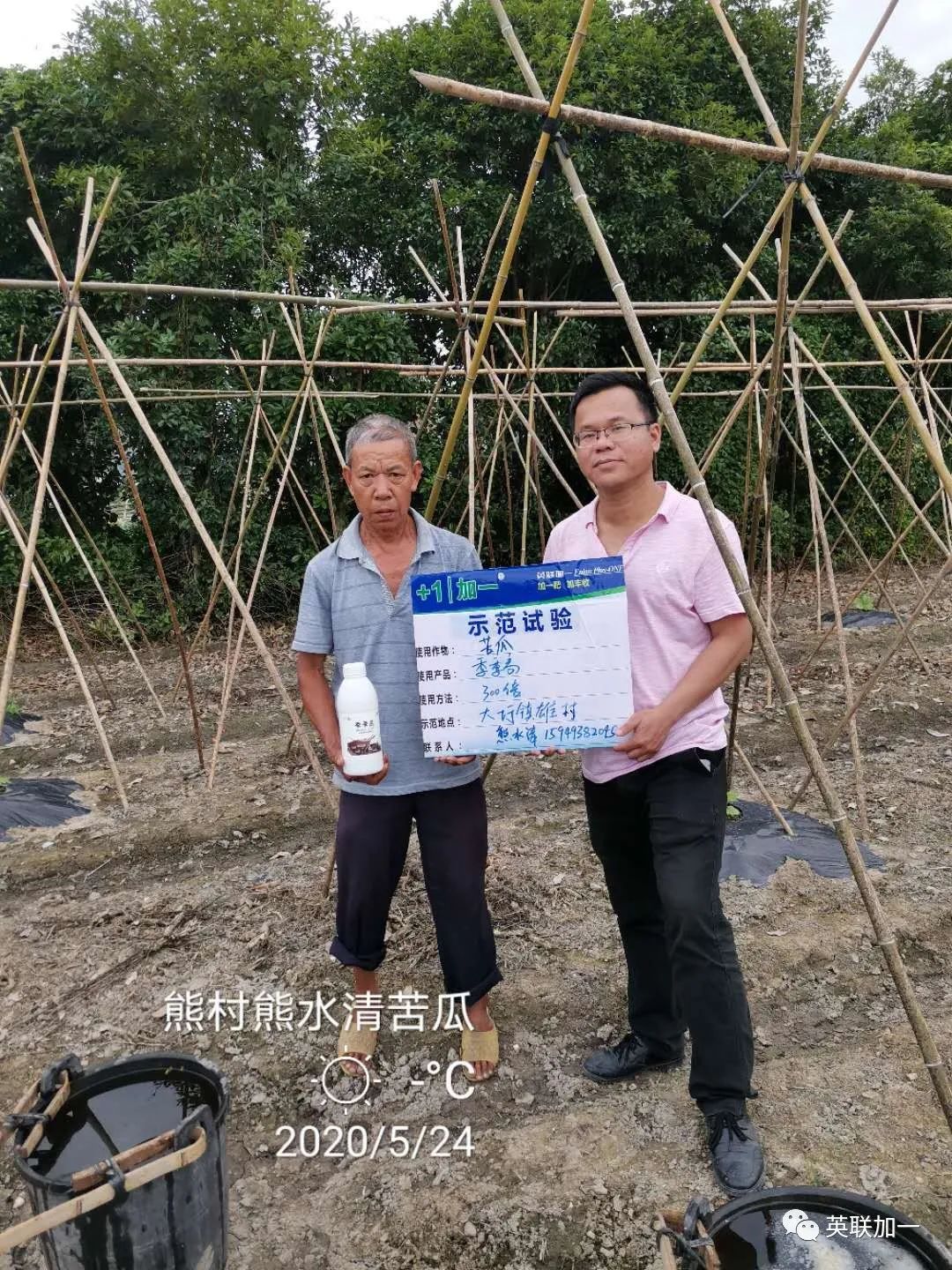 英联加一示范田,这次来到了桂林市大圩熊村,这时的苦瓜和丝瓜正处于苗期和生长期,需要大量的营养补充。如何促进瓜类快速生根长藤,是熊老板一直在寻求的答案。加一技术人员来到了大圩熊村,考察了熊老板的土壤状况和作物的生长状况后,为熊老板提供了一个促进生根长藤的“神器”——季季高。