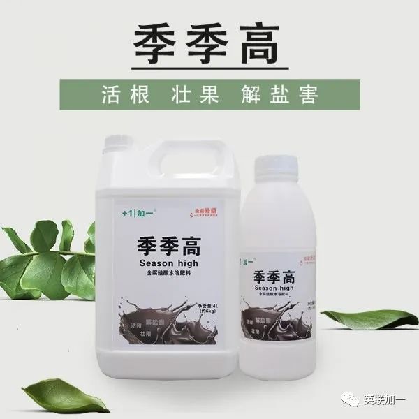 季季高是悬浮剂水溶肥,营养全面,含大量元素、中微量元素、有机营养和高效助剂,可以为植株提供大量养分。同时具有调节土壤微生态环境的作用,改良土壤结构,促进根系生长。季季高的水溶性高,植物吸收快,见效快。