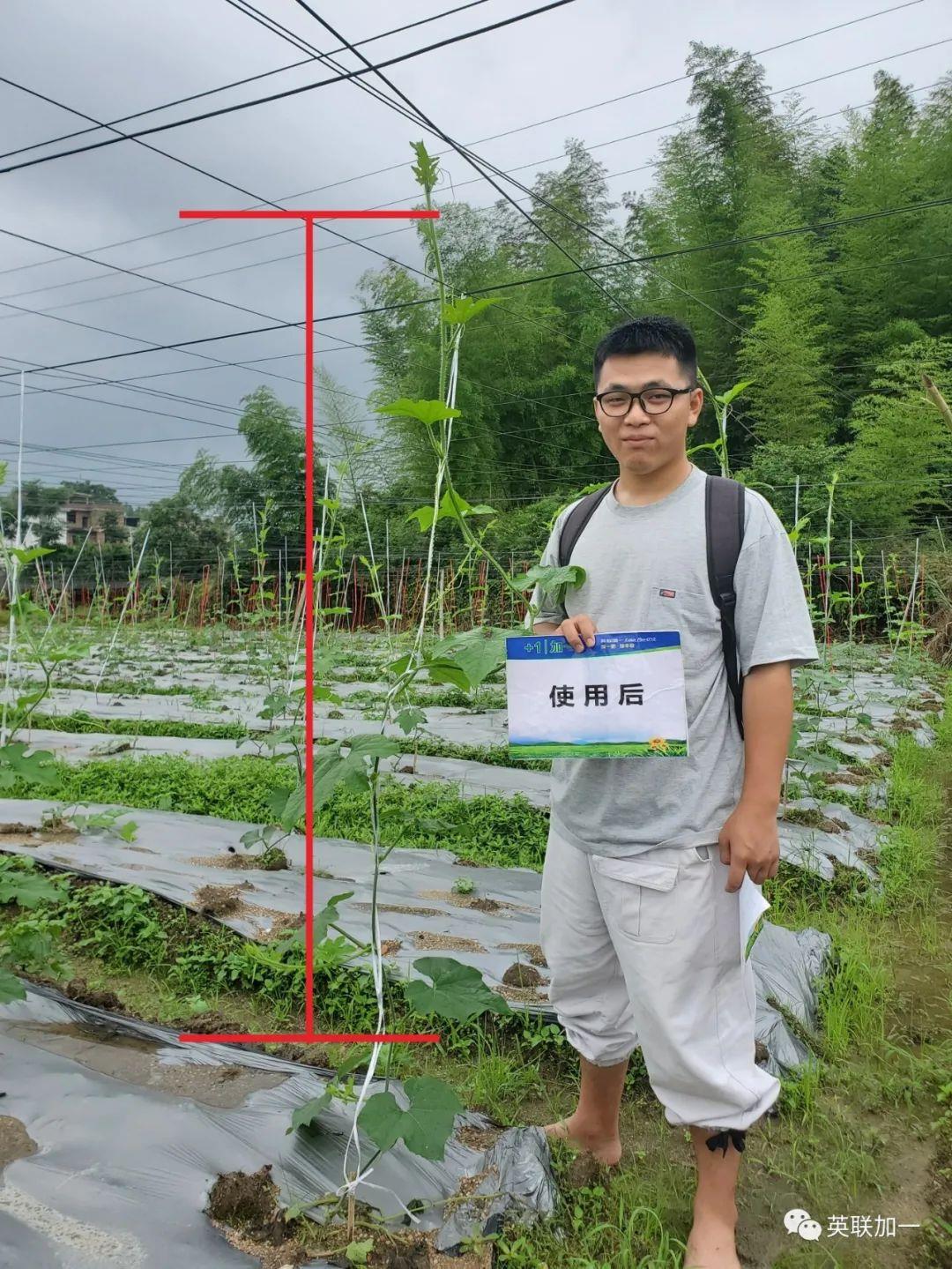 2020年6月6日,使用根满壮鱼油型第14天,英联加一团队再次来到冬瓜田进行第二次回访。余老板高兴的告诉我们,根满壮鱼油型的效果简直太好了!这才用了半个月不到,最高的苗已经长到了2米。