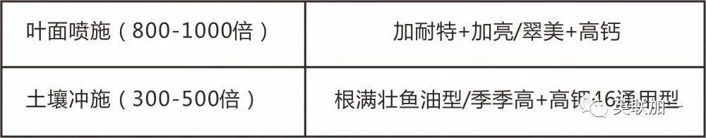 ·对于生长旺盛的结果树来说,重点在控氮,增施磷、钾肥料上,补充钙素预防裂果,减少落果,这个时期的柑橘树容易缺镁,老叶中的镁会向幼果转移,所以需要补充镁素。此外还需要补充生物刺激素来提高果树的抗逆性,预防日灼果。