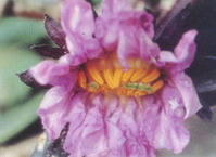 Ⅱ:相比柱头,雌蕊更多,且排列成扁柱状或带状,这种现象通常被称为雌蕊“带化”。正常的茄子花,大而色深、花柱长,开花时雌蕊的柱头突出,高于雄蕊花药之上,柱头顶端边缘部位大,呈星状花,即长柱花。生产上有时遇到花朵小,颜色浅,花柱细、花柱短,开花时雌蕊柱头被雄蕊花药覆盖起来,形成短柱花或中柱花。当花柱太短,柱头低于花药开裂孔时,花粉则不易落到雌蕊柱头上,不易授粉,即使勉强授粉也易形成畸形花或花脱落。主要是花芽分化期间夜温低所致。花芽分化,尤其第一花序上的花在花芽分化时夜温低于15℃,容易形成畸形花。另外,强光、营养过剩,也会形成畸形花。花芽分化期,苗床温度白天应控制在24-25℃,夜间15-17℃。生长期间保证光照充足,湿度适宜,避免土壤过干或过湿。采用“稍降温、多控水”的办法。科学施肥。确保苗床氮肥充足,但不过多;磷、钾肥及钙、硼等微量元素肥料适量。苗龄70~80天,要求茎粗短,节紧密,叶大叶厚,叶色深绿,须根多,苗期温度白天控制在28~30℃、夜间18~20℃,同时注意光照。不产生新根和不定根,根皮成铁锈色,而后腐烂,容易拔起,叶片黄化、枯焦。沤根后地上部子叶或真叶呈黄绿色或乳黄色,叶缘开始枯焦,生长极为缓慢。在子叶期出现沤根,子叶即枯焦;在某片真叶期发生沤根,这片真叶就会枯焦,因此从地上部瓜苗表现可以发生沤根的时间及原因。