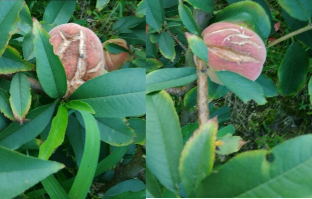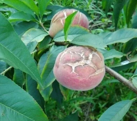 平地的沾黏黑泥土的桃子,要注意地头管理,进行挖沟排水,确保树根不被雨水侵泡,雨天能正常排水。
