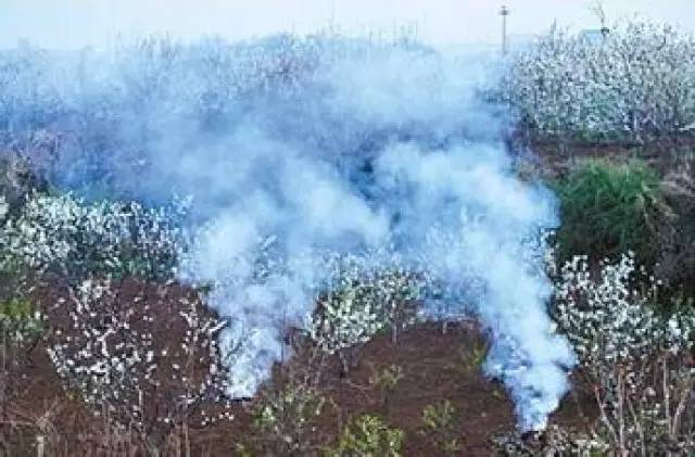 5.冻前灌水:大冻前十天左右,对果园进行一次冬灌,因冬灌可增加土壤温度,又可保持土壤墒情,使土壤温度得以稳定,既防寒又可做到冬水春用,防止春旱。 6.熏烟增温:熏烟宜在冬季最寒冷的夜间采用,燃烧以锯末、碎柴草等,在夜间12时左右点燃,注意控制火势,以暗火浓烟为宜,一般每亩不少于3—4个燃火点,据测定熏烟法可提高气温3—4℃。