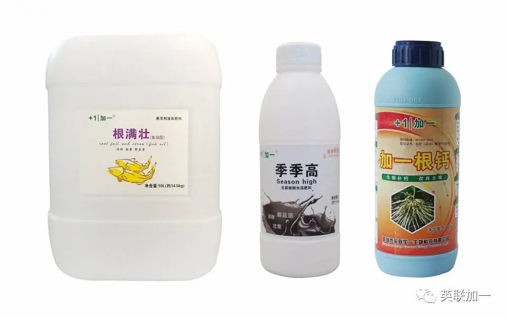 推荐苗期冲施肥:根满壮鱼油型/季季高/加一根钙