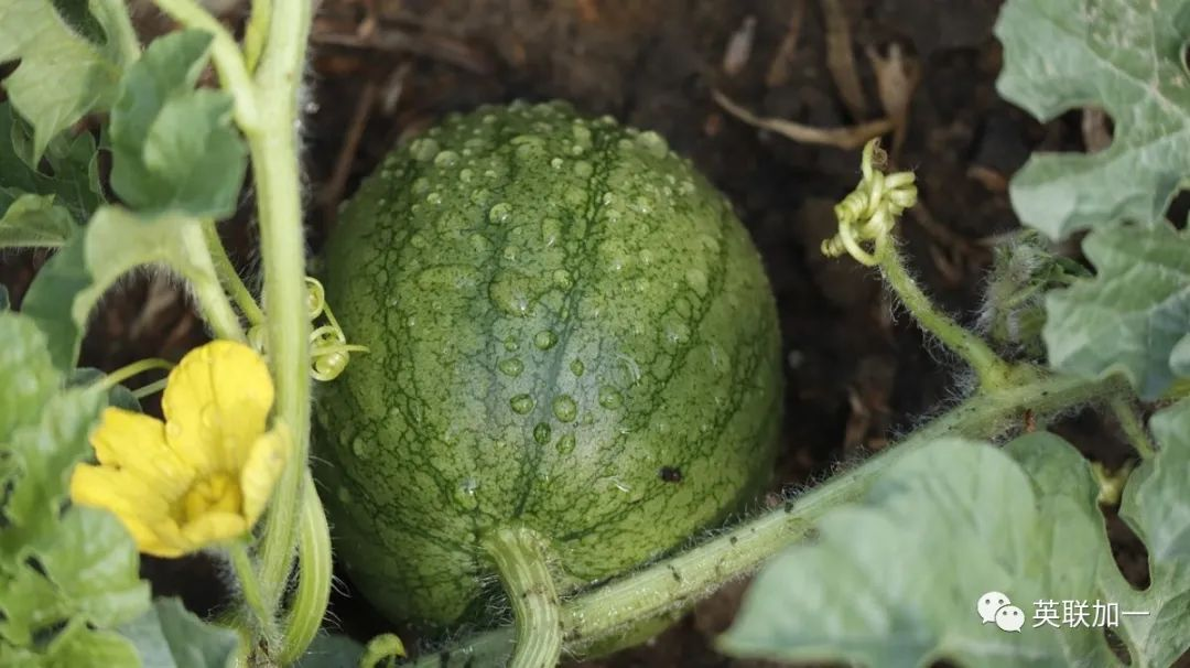 西瓜从第二雌花开花到果实褪毛为结果前期。西瓜果实鸡蛋大小,果实表面的茸毛逐渐脱落,幼果表面呈现明显的光泽。标志果实已基本坐稳,果实进入旺盛生长阶段。