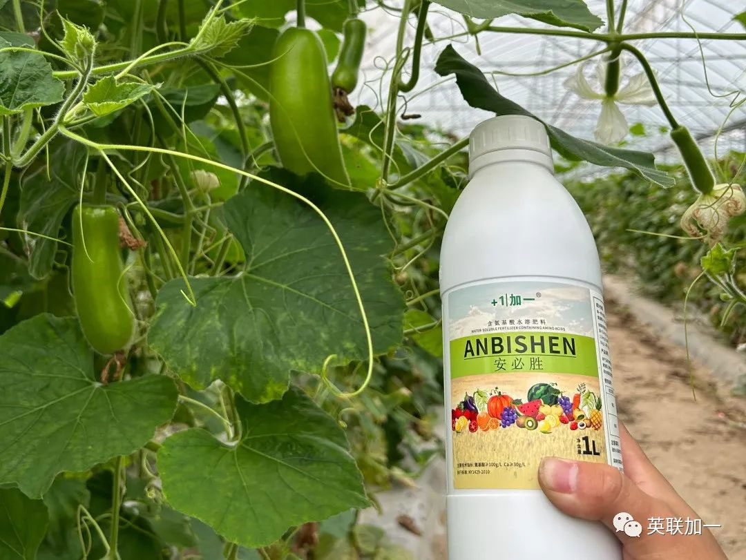 通过安必胜对即将进入衰老期蒲瓜的使用,安必胜含量丰富的氨基酸,在作物生长过程中明显改善作物的长势,恢复作物生长趋势,延缓作物衰老,延长生长周期,有效解决作物因缺素或营养缺失引起的早衰。同时解决作物后期,因各种因素引起的生长受阻、花朵和果实畸形发育的不良现象,提高作物生长品质。