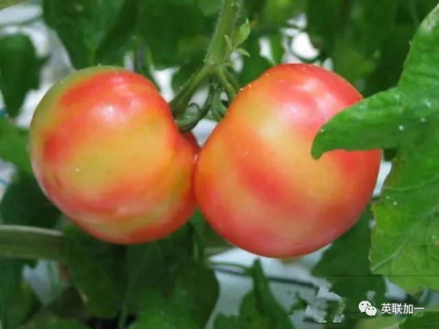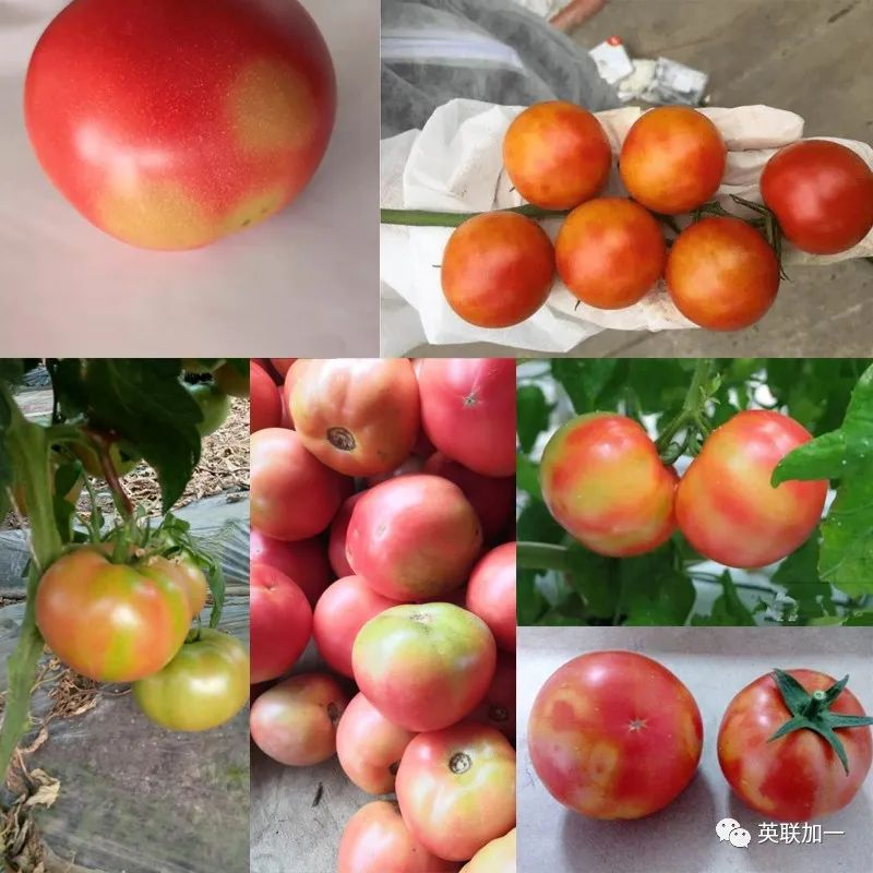 1.氮肥过多。在番茄果实着色期,尤其是变红阶段,施用氮肥过多,营养生长过旺,叶绿素含量较高,导致果实特别是果蒂部叶绿素分解推迟或减缓,影响番茄红素、类胡萝卜素的形成,从而影响 番茄着色,在果实表面出现黄或绿色的斑块。