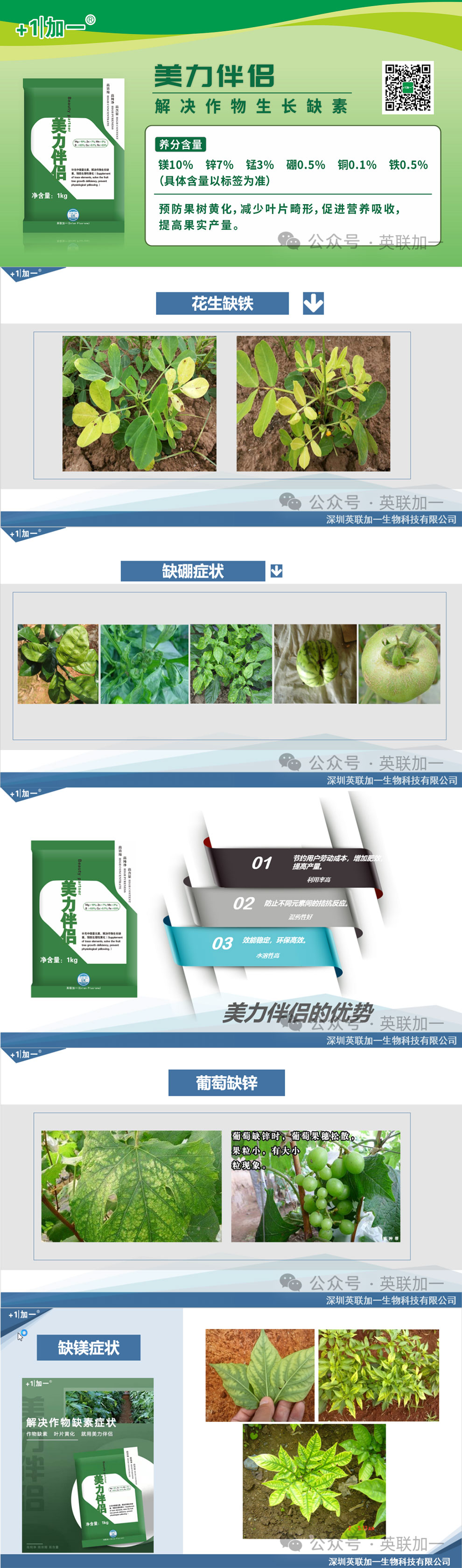镁元素是农作物生长的重要营养元素之一,对于农作物的产量和品质有着至关重要的影响。然而,很多农民在种植过程中往往忽视了镁元素的重要性,导致农作物生长不良,甚至减产。因此,本文将详细介绍镁元素对农作物生长的影响,包括作用机理、阈值分析和案例分析,旨在帮助农民合理使用镁元素,提高农作物的产量和品质。 镁元素是叶绿素的重要组成成分,参与了农作物的光合作用。而镁元素则是叶绿素的核心元素,对光合作用的正常进行起着至关重要的作用。此外,镁元素还参与了植物体内多种生物化学反应,如蛋白质合成、核酸代谢等。这些反应都是植物生长和发育所必需的。主要功能如下: 1.镁元素对叶绿体的结构有重要作用, 作物缺镁, 叶绿体的结构会受到破坏,外观出现缺绿症,光合作用减弱,糖类、蛋白质、脂肪的合成受到影响。在光合作用中,叶绿素吸收光能,并将其转化为植物所需的化学能。 2.镁是植物体多种酶的活化剂。这些酶关系到脂肪、蛋白质等物质的代谢与能量的转化, 如磷酸化过程, 几乎所有的酶都需要镁活化。 3.健康植株叶中约75%的镁与核糖体结构有关,核糖体是蛋白质合成的工厂, 缺镁影响了植物体内蛋白质的合成。 镁元素在农作物生长中的需求量并不是一成不变的。不同作物、不同生长阶段对镁元素的需求量都有所不同。一般来说,农作物生长过程中,当土壤中镁元素的含量低于0.5毫克/千克时,就容易出现缺镁症状。此时,为了满足农作物的生长需求,需要适当补充镁元素。然而,过量的镁元素也会对农作物产生负面影响, 甚至引起中毒症状。对一般作物来说,镁的含量约占干重的0.5-7克/千克。因此,在补充镁元素时,必须严格控制用量,确保在阈值范围内。 镁元素对农作物生长具有显著的影响。通过作用机理分析,我们知道镁元素参与了农作物的光合作用和多种生物化学反应,对植物的生长和发育至关重要。而在阈值分析中,我们了解到不同作物和生长阶段对镁元素的阈值不同,因此需要适时适量地补充镁元素以避免出现缺镁或过量的情况。通过案例分析,我们可以看到镁元素的适量补充对柑橘、葡萄等作物生长具有积极地促进作用。因此,合理使用镁元素对于提高农作物的产量和品质具有重要意义。 在实践中,农民可以根据土壤检测结果和农作物的生长情况来判断是否需要补充镁元素。在必要时,可以向专业人士寻求帮助以制定合理的施肥方案和补充镁元素的优质产品。 美力伴侣解决作物缺素症状