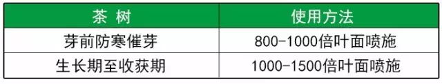 增强茶叶抗寒、抗旱、抗病能力,能迅速克服各种生理性障碍和缺素引起的早期失绿落叶、黄叶、白叶、植株瘦弱发育不良等现象。